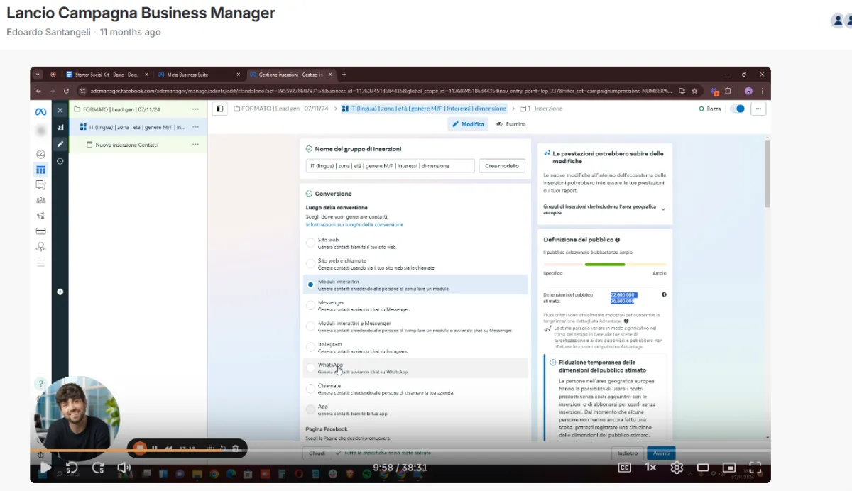 Video-training esclusivo su campagne Meta Ads + checklist operativa per gestire e ottimizzare i tuoi risultati in modo professionale.